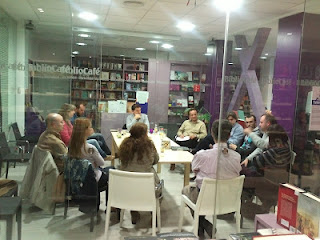 El periodista con posibilidades de dedicarse a este oficio y vivir de él es multimedia, comercial y gestor. Esta frase puede resumir, en cierto modo, la charla de Pere Valenciano en Bibliocafé organizada el pasado viernes 20 de abril por la Asociación Profesional de Periodistas Valencianos (APPV). La pronunció el propio Pere al presentar su proyecto de franquicia de elperiodicodeaqui, tanto .com como en versión papel. Se trata de abrirlo a muchos pequeños franquiciados que lo gestionen para que, entre todos, hagan grande el proyecto. Unión de esfuerzos, como insistió.