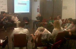 Fernando Ballester repasó algunas herramientas que facilitan el proceso de redacción de noticias 2.0, como google adwords, google trends, Wylio o Flickr. Sus explicaciones las resumió en unas páginas que repartió a los asistentes y en una batería de tuits que colgó en su twitter (@Fer_Bru) entre las ocho y las nueve de la noche del pasado 19 de octubre.