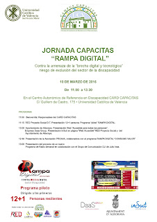 En dicho acto se realizará la presentación del programa piloto, RAMPA DIGITAL, un referente al acceso a las nuevas tecnologías y productos de apoyo para personas que las precisan para comunicarse y para sus actividades básicas de la vida diaria.