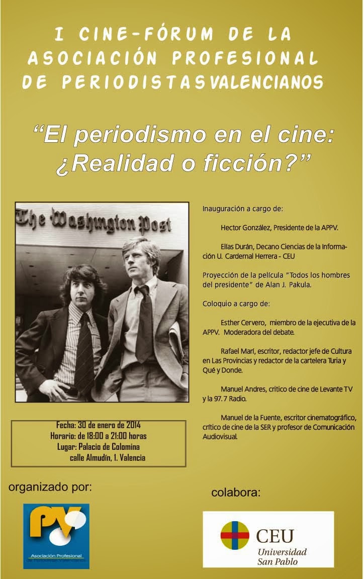 El próximo 24 de febrero, a las 18:00 horas, en el Palacio de Colomina, APPV organiza el I Cine-Fórum de la Asociación Profesional de Periodistas Valencianos con la proyección de ‘Todos los hombres del presidente’ de Alan J. Pakula.